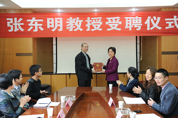 二楼会议室掌声连连,南方日报社社长、南方报业传媒集团总编辑张东明先生兼职教授聘任仪式在此隆重举行。