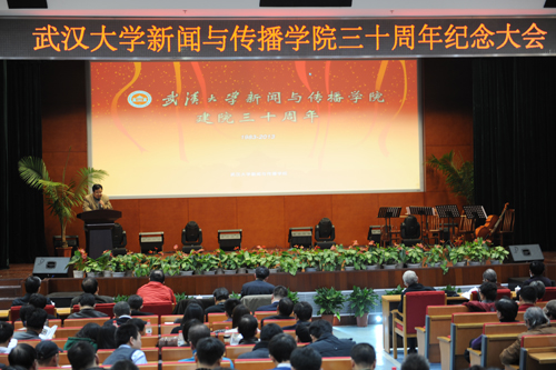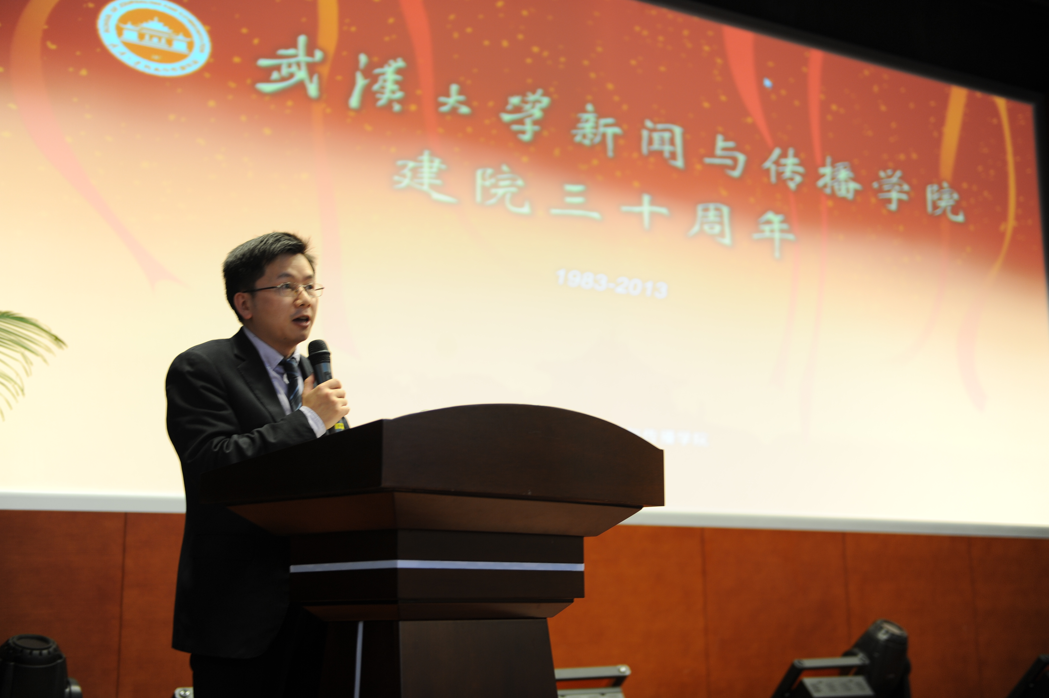 会上,湖北日报传媒集团总编辑蔡华东、湖北长江广电传媒集团总经理张海明分别作为校友、也代表本地媒体单位发言,对学院三十华诞表示祝贺,表达了进一步加强与学院交流合作的愿望和信心。中央人民广播电台副台长赵铁骑、河南省委宣传部副部长李宏伟、中宣部《党建》杂志社总编辑刘汉俊先后作为校友代表发言,深情回忆了他们在珞珈山上求学的青葱岁月,表达了对母校的感恩和祝福。在校学生代表、2013级硕士生张可儒作了题为《光荣的荆棘路》的发言,阐释了武大新闻人的执着梦想。