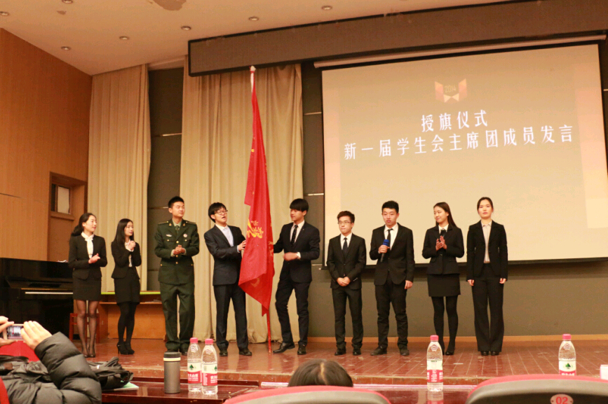 2014年12月18日下午18时许,在新老两届主席团成员完成换届仪式后,海角视频 第十四次团员代表大会暨学生会代表大会圆满落幕。(院团委学生会新闻部 丁钰淋 )