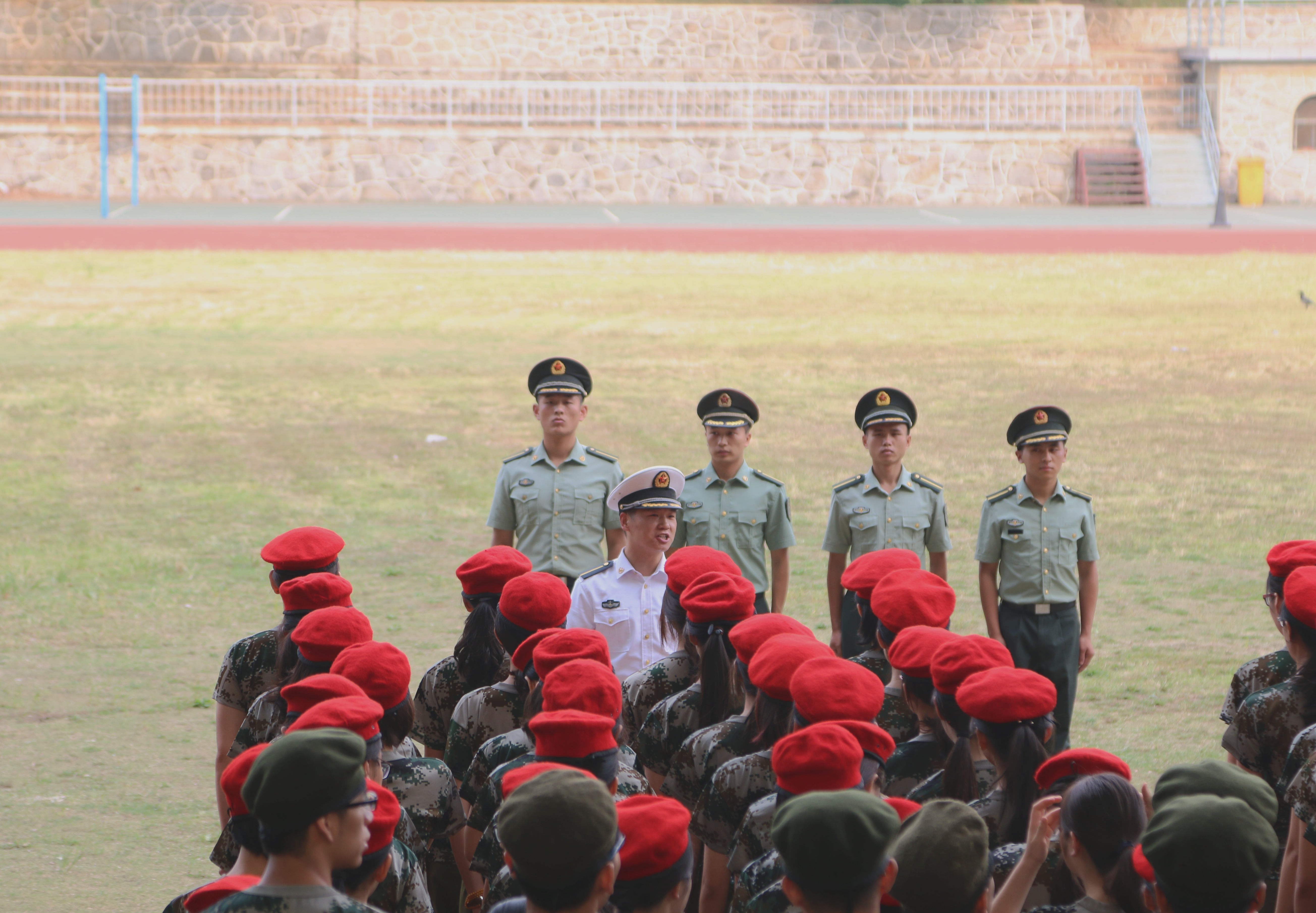 来到集合地点,教官们整齐挺拔的军姿想必有给同学们眼前一亮的感觉。