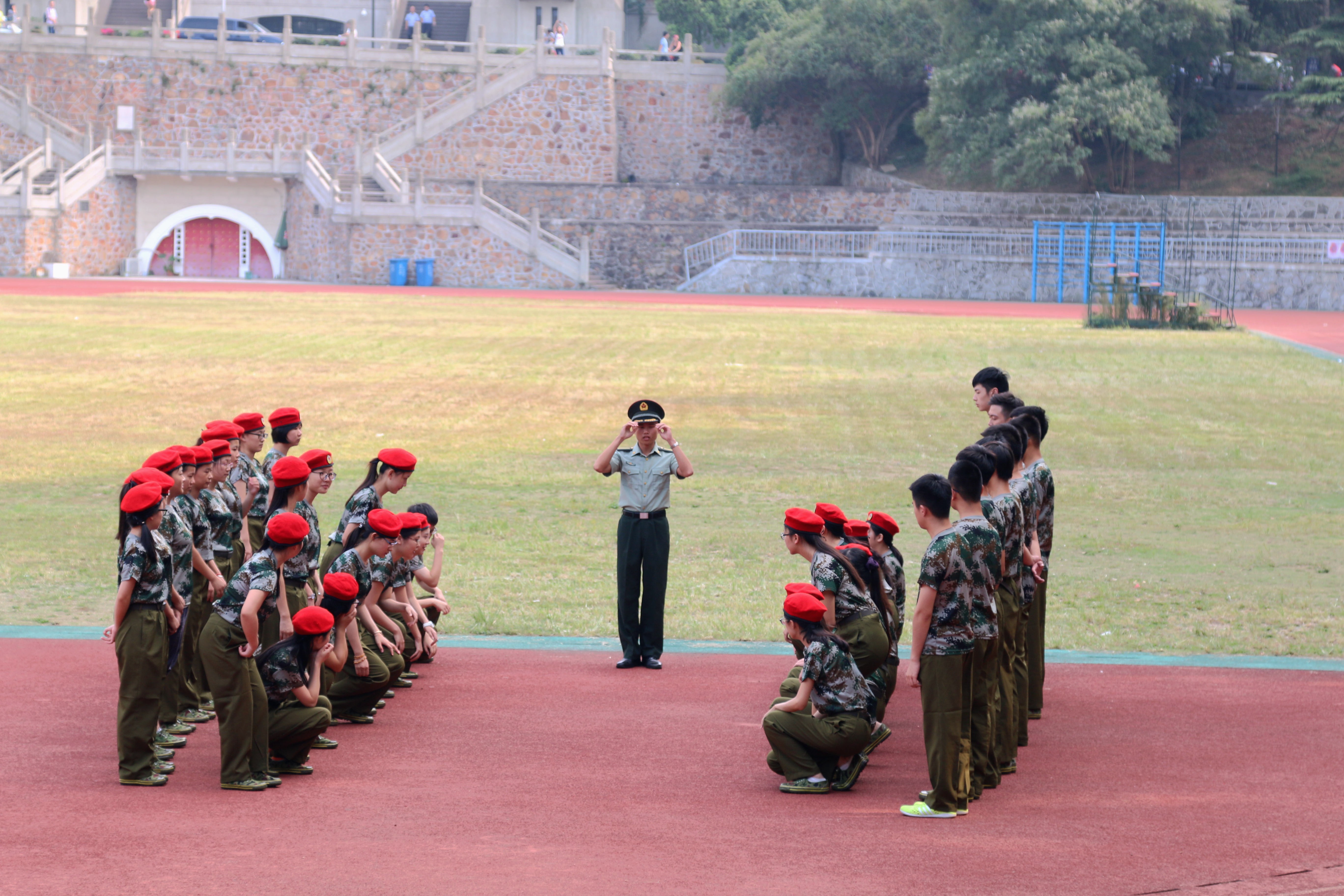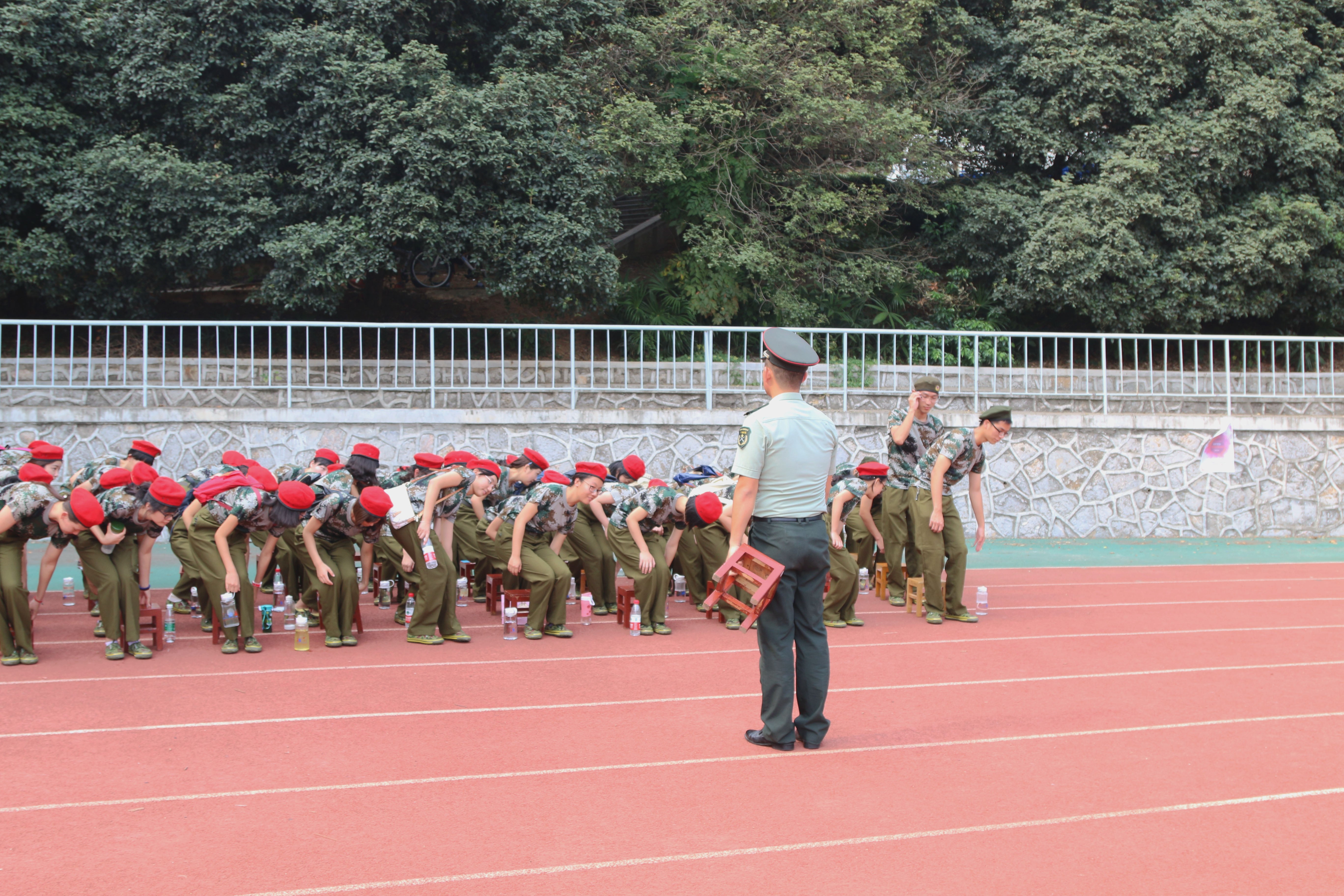然后就进行各种口令以及动作的教学,简单的坐的动作,教官也在认真耐心地讲解。