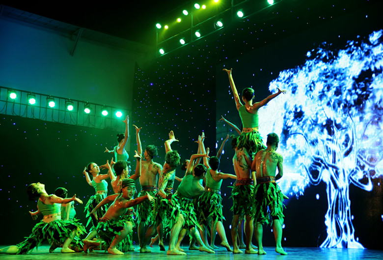 演员们正是希望用肢体的力量展现树的生命和灵魂,用树叶和藤曼来表达和祖国血脉相连的感情,由小树苗逐渐成长也表达了新传人对祖国和民族未来发展美好的祝愿。男孩们扮演的小树苗逐渐成长为枝繁叶茂的大树,女孩在里面则一群孔雀,小树苗不断经历风雨,经受磨练,最后成长为参天的大树。舞者通过这样的故事,表达希望祖国未来成长地更好的心愿。