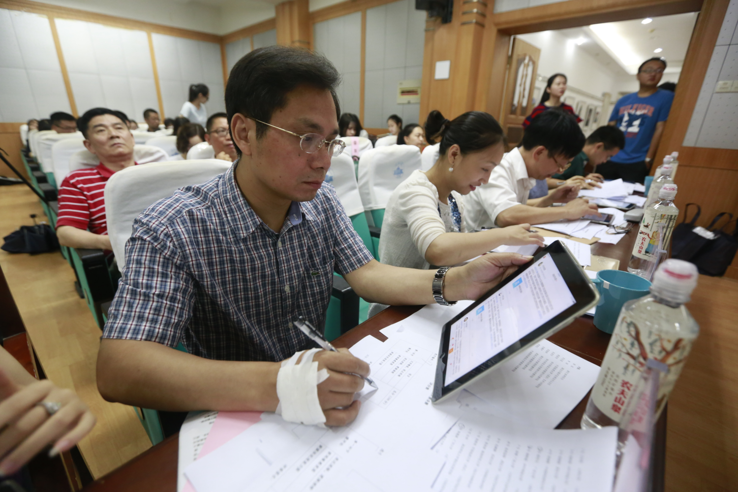 自4月18日本次活动启动以来,大赛收到了200多篇评论作品,根据思想性、时效性、专业性的基本原则,20位选手进入6月15日的线下决赛。决赛分为“微评论”和“理论前沿”两个环节,选手分别根据抽选的话题现场限时进行微博评论撰写及2分钟现场评论。其中, 第一环节“微评论”,评委用ipad给选手的参赛微博打分。