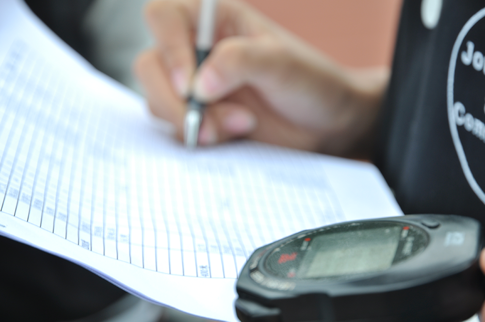 裁判很认真的记录着成绩