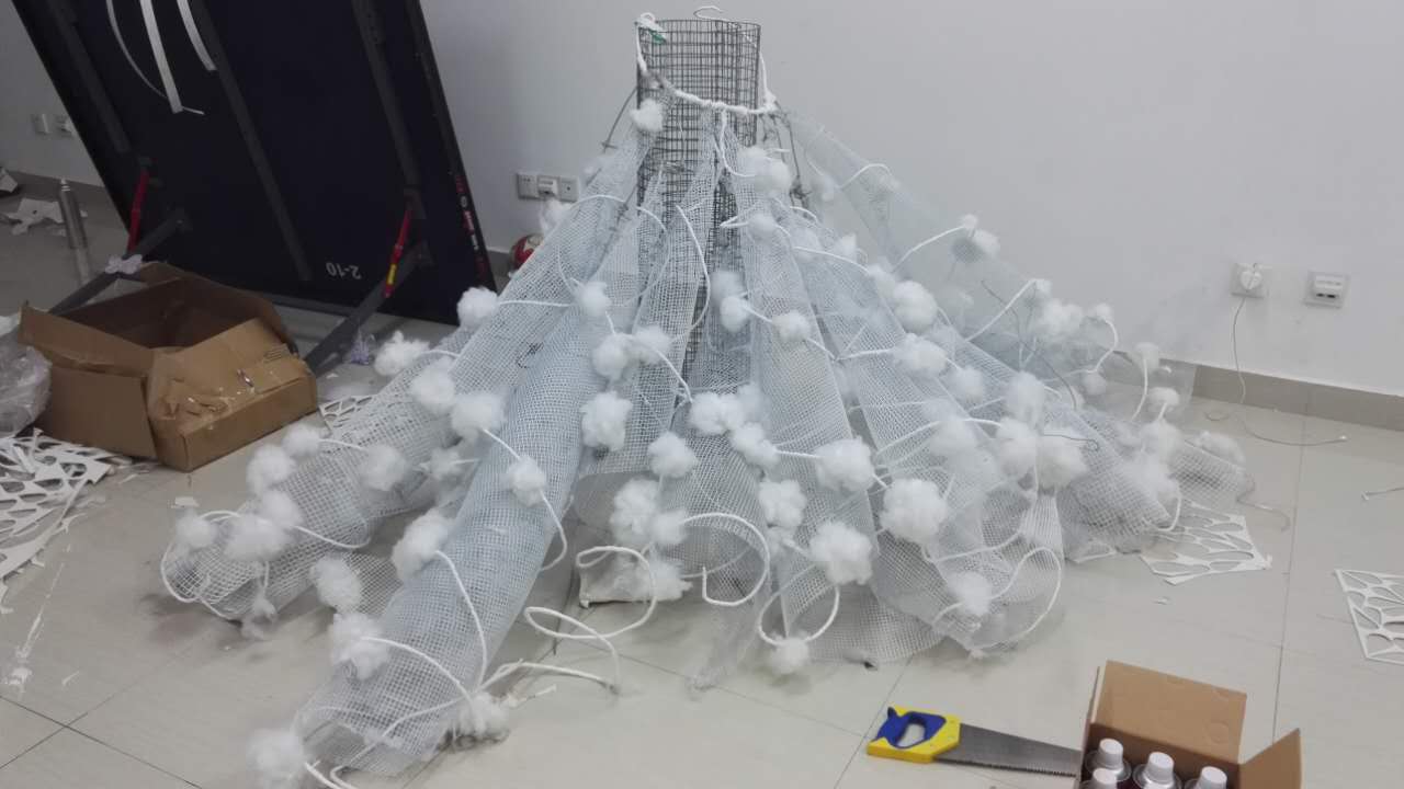 在敲定以棉花为素材之后,他在淘宝上买了十斤产自新疆的棉花开始摆弄。“我们今年主题虽说是棉花,但棉花只花了46块钱。”杨绍湫笑着说。