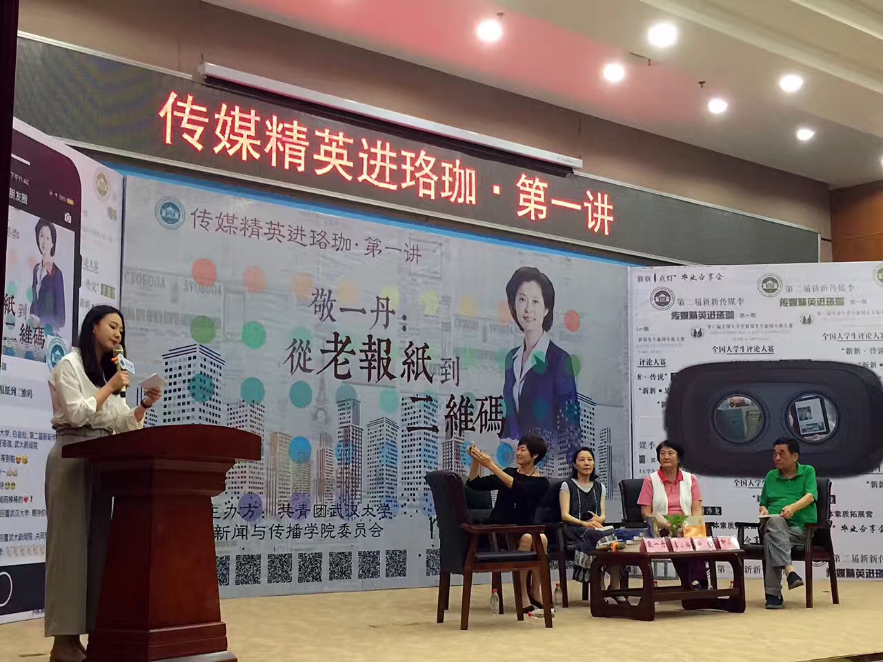 2017年5月11日下午2点,中央电视台著名主持人敬一丹与其北京广播学院(现中国传媒大学)的校友柳棣、柳小满、李小梅一同来到海角视频 ,在外国语言文学学院的报告厅举办了名为“从老报纸到二维码”的讲座,会后还为武大学子准备了签名、合影环节。