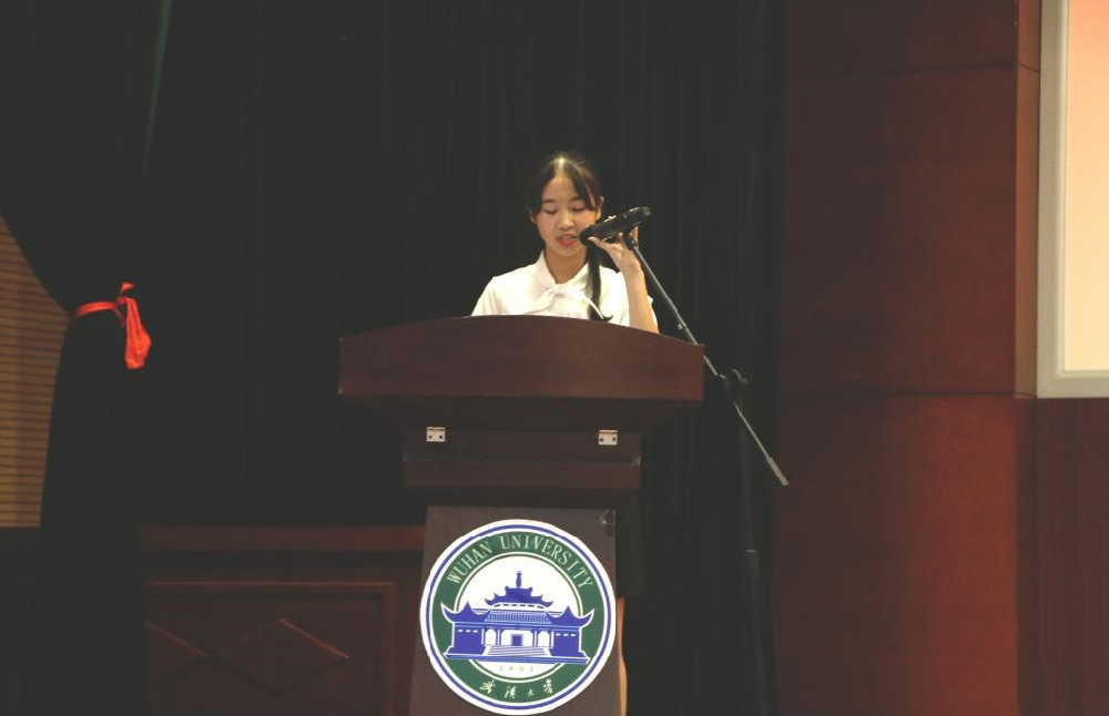 最后,研究生代表汪拯名同学上台发言。他表达出当代大学生应明确自己的角色,在学习过程中,广泛涉猎,博采众长,拥有思考内容、质疑问题、探索知识的本领。然后他借程明副院长的“研读经典,探究传播,生成学问”指出何谓研究生。而作为一名新闻与传播专业的研究生,应立足经典,关注前沿,提高自己的专业水平。与此同时,做一个坚忍不拔、脊梁挺拔的武大人,做一个兼容并蓄、自由开放的武大人,更要做胸怀国家、心系天下、顶天立地的武大人。