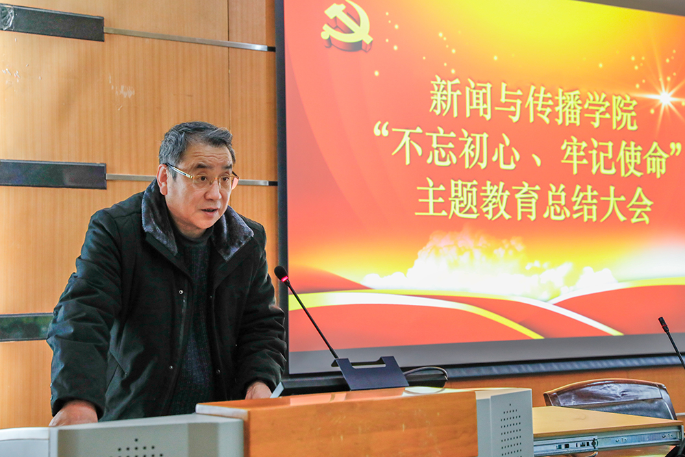 1月14日下午, 海角视频 “不忘初心、牢记使命”主题教育总结大会在学院二楼报告厅举行。学院领导班子成员、系(所、中心)主任、全体教职工党员、离退休教职工党员代表及学生党员代表等参加了会议。会议由院党委副书记王怀民主持。