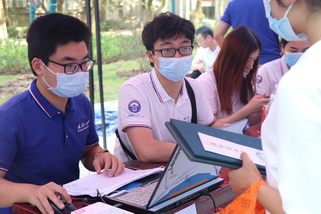迎新过程中,学院党委副书记张琦老师,学院研究生工作办公室的帅晓琴老师、程盼盼老师、杨頔老师,以及两位兼职辅导员杨泽、蒋晓婧也来到了现场,指导和协助报到工作。老师与新生们交流着兴趣爱好和未来规划,希望他们能够不虚此行,不负青春,在珞珈山下为自己的人生写下满意的篇章。