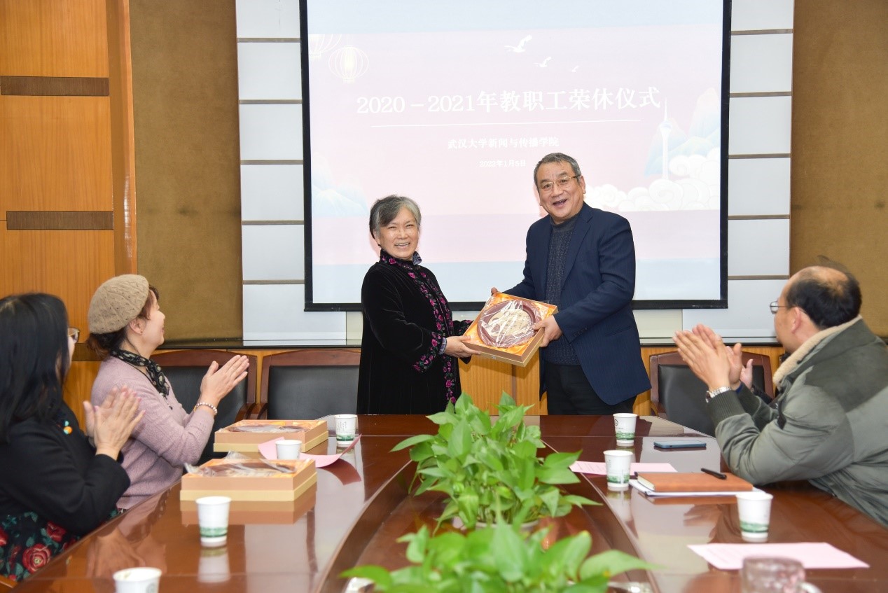 2020-2021年,学院共有石义彬教授、陈瑛教授、倪振华老师、叶晓华副教授和夏琼教授五位教职工荣休。学院院长强月新教授首先为四位参加荣休仪式的教职工颁发学院特制的荣休纪念牌。