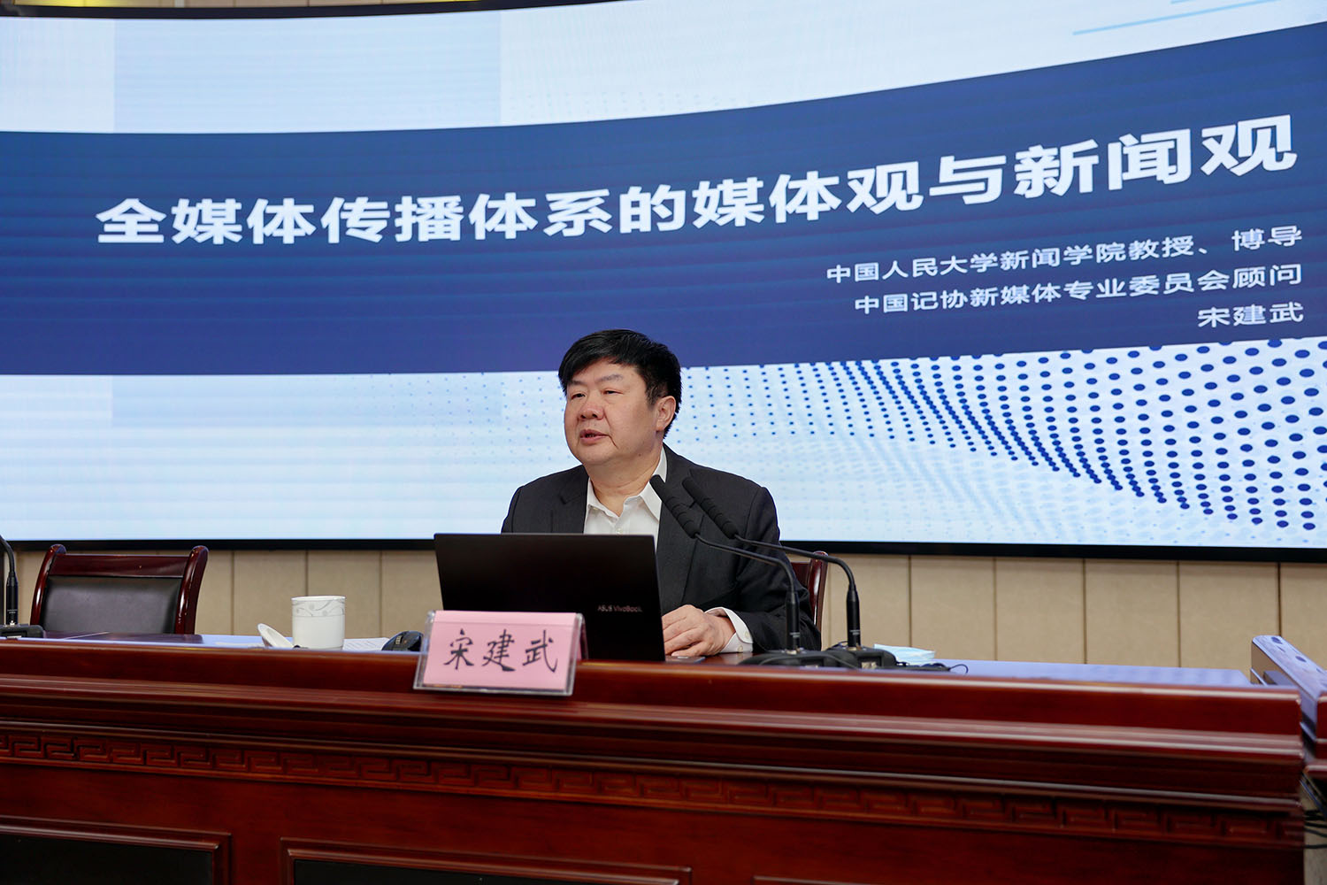 宋建武从全媒体传播体系的内涵讲起,逐一介绍其特征、支撑点和意义;从信息技术的发展与媒体演进逻辑,说到全媒体传播体系“媒体观”;从“耳目”功能、“喉舌”功能到“新闻+政务+服务+商务”的功能拓展及其必然性;从新闻活动的“本体”“主体”与“权利”,介绍了全媒体传播体系的“新闻观”。宋建武认为,全媒体传播体系的“四全”特性与以互联网为核心的现代信息技术发展紧密相连;只有全面综合运用以互联网为核心的现代信息技术,才能够在技术基础上打牢全媒体传播体系的基础,建成“全程”媒体和“全息”媒体;在“全员”媒体的背景下,各种主体都可以在互联网的平台上有广泛深入的参与;“全效”媒体则意味着未来的新型主流媒体,功能不仅局限于传统的引导功能,更要有服务功能。移动互联网的时代浪潮下,媒体转型之路是机制之变,也是理念之变。