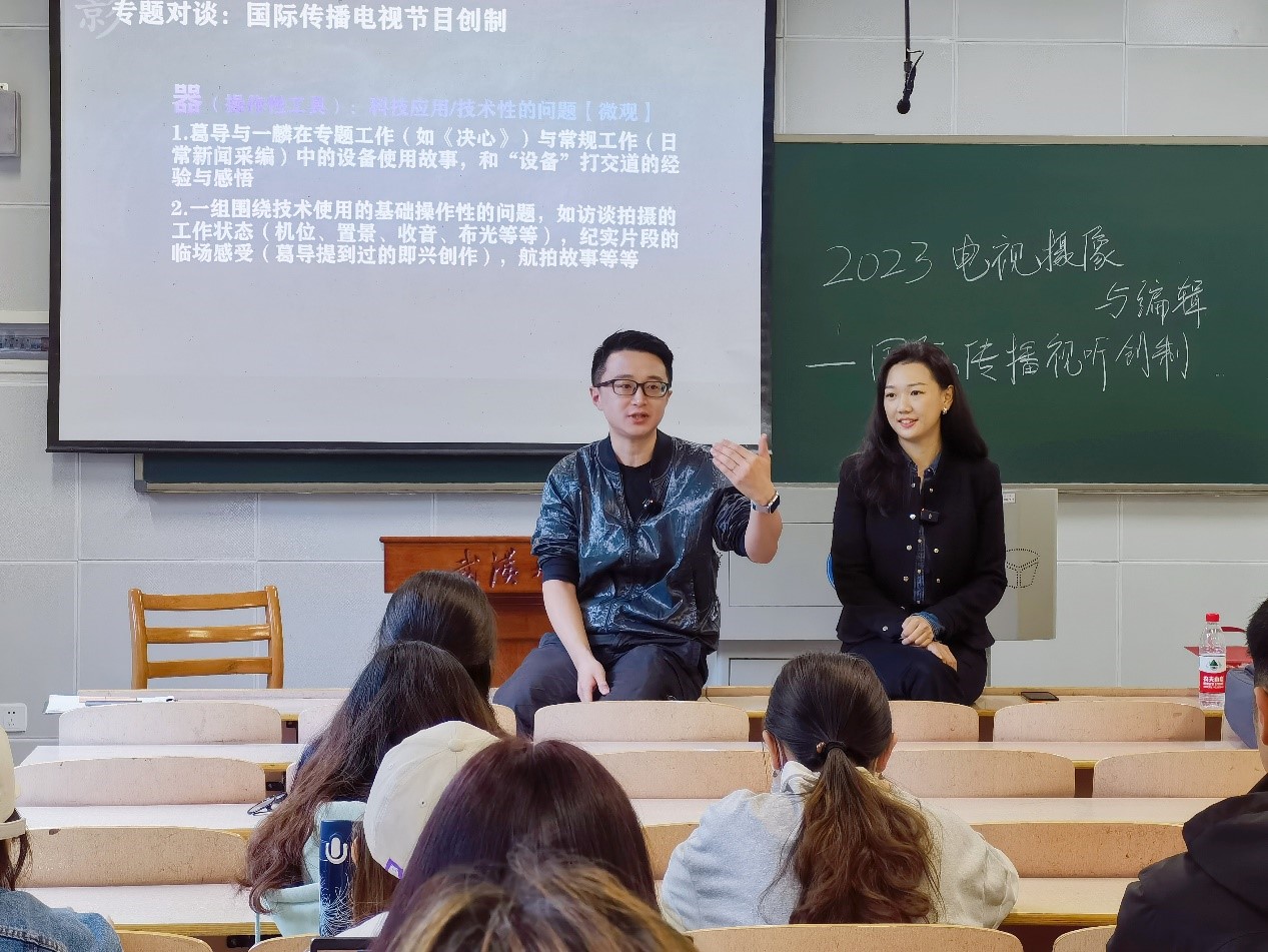 5月8日上午,教5楼102教室,行业专家走进 海角视频 本科生《电视摄像与编辑》课堂,开展了“国际传播视听节目创制——以《了不起的决心》为例”的对谈式专题讲座。