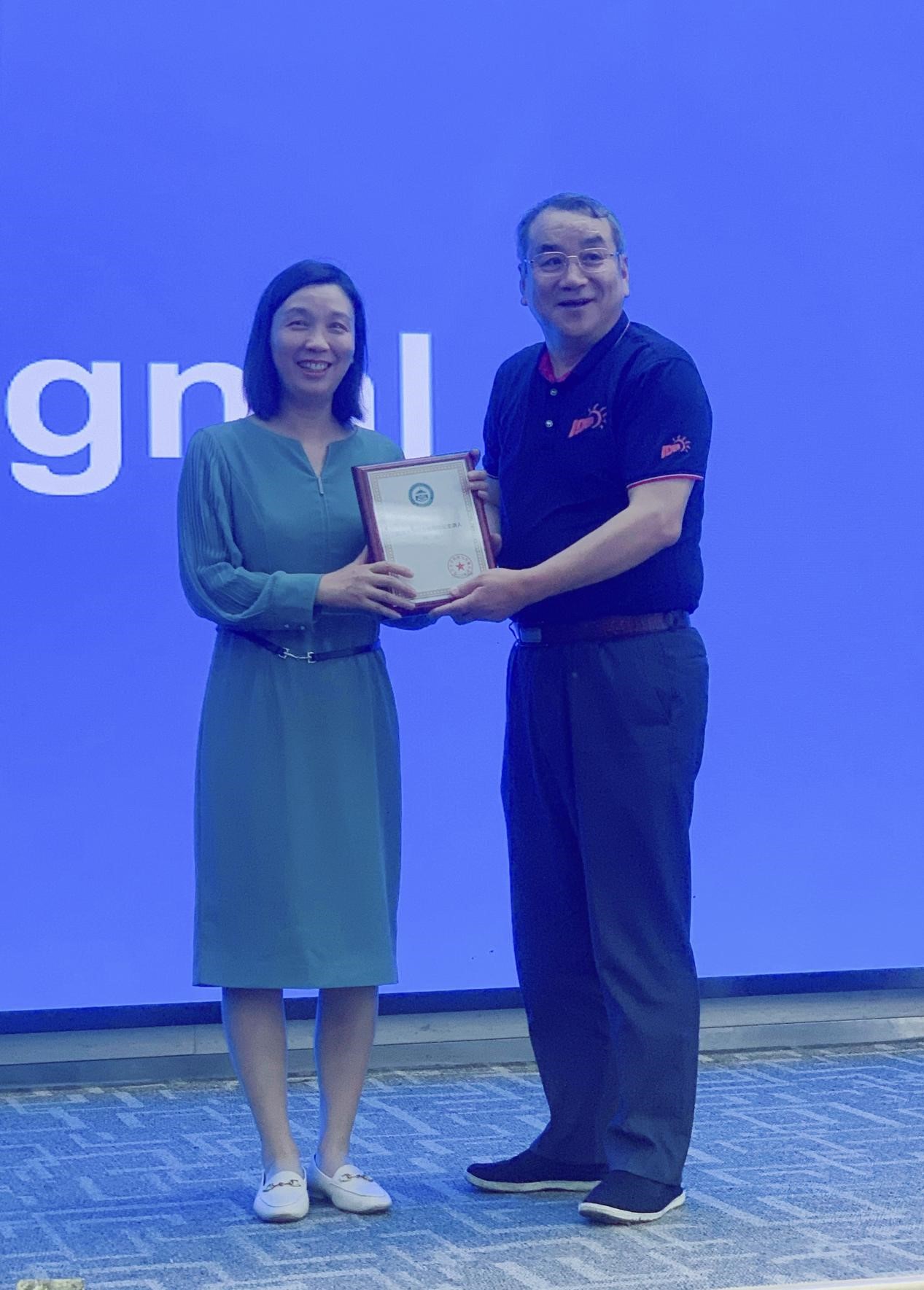 讲座正式开始之前,强月新院长为邓为老师颁发了“校友传媒论坛主讲人”证书。