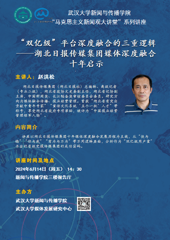 讲座以湖北日报传媒集团十年媒体深度融合发展历程为主线,从“快与稳”“你与我”“有为与不为”等不同逻辑层面,分析作为“双亿级用户量平台的省级党报传媒集团的成功密码。