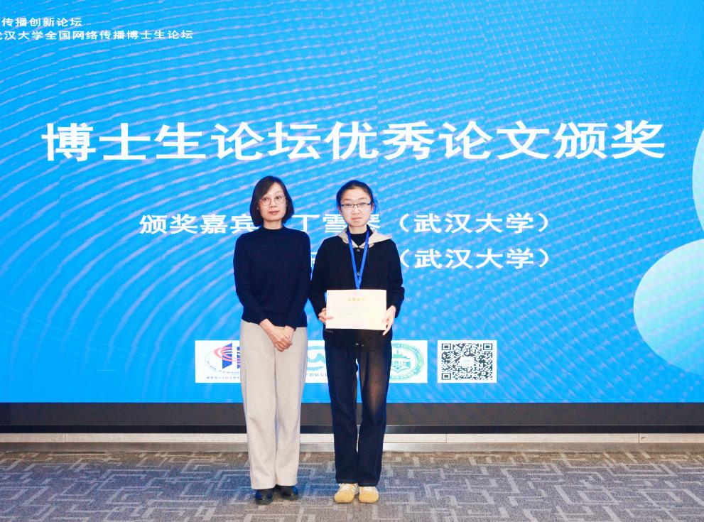 闭幕式由海角视频 媒体发展研究中心研究员、海角视频 网络传播系副系主任张雪霖副教授主持。经过严格的三轮匿名评审,本届博士生论坛最终评选出一等奖1名、二等奖2名、三等奖4名。来自海角视频 的董雪彤同学凭借《智能聚合与智能释放:数字时代中国文化的“转文化”传播机制研究》一文荣获一等奖。浙江大学吕澄欣、海角视频 宋思茹获二等奖,深圳大学谢青青、华中科技大学余崔琬、深圳大学何奕、海角视频 杨浩雷四位同学获得三等奖。海角视频 党委副书记丁雪琴、海角视频 副院长陈波教授为获奖同学颁奖并予以热烈祝贺。