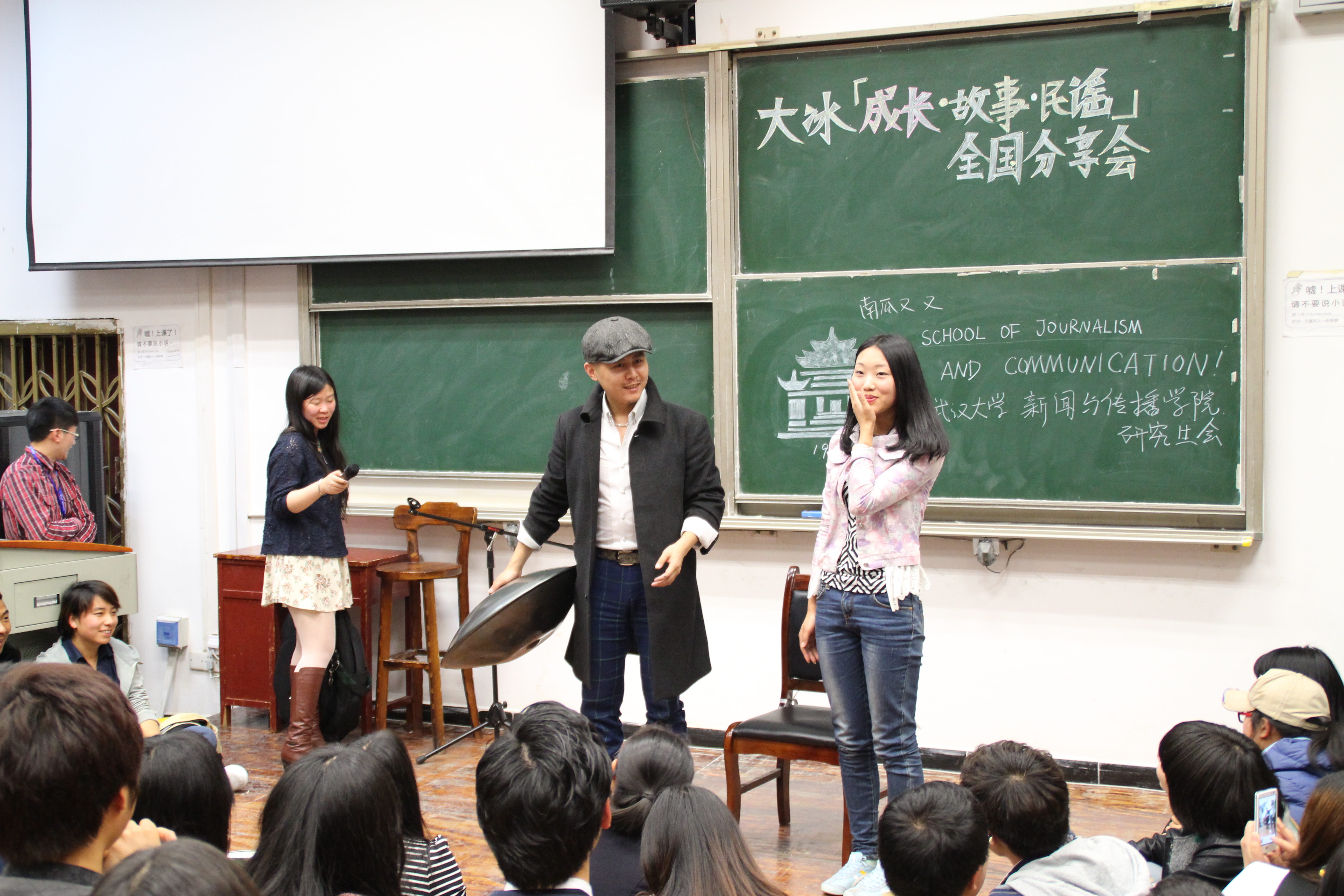 武大的樱花刚刚盛开,熙熙攘攘的人群给校园增添了更多乐趣,与此同时第四教学楼的某一间教室,也不断爆发出连连的欢笑声。2014年3月21日下午,由海角视频 新闻传播学院研究生会主办的大冰百城百校长聊会在教四301拉开帷幕,而这次畅聊会的主角——山东卫视主持人、民谣歌手、背包客、畅销书作家——大冰,将会跟大家一起分享他的“成长·故事·民谣”。