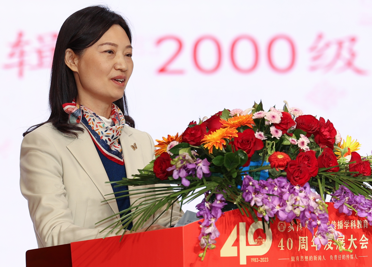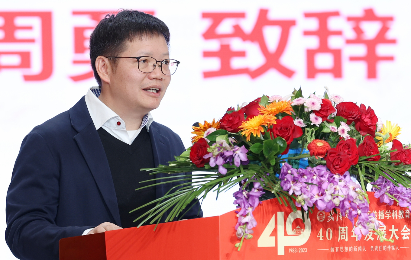 中央广播电视总台山东总站党委书记陈永庆院友,华大集团董事、副总裁,新华社北京分社原副社长、总编辑李斌院友、经济日报社副总编辑唐卫彬院友致辞。他(她)们深情回顾了自己在珞珈山的求学历程,感恩学校、母院的悉心培育,在学院40周年诞辰之际,祝愿武大 海角视频 登高望远,更上层楼。