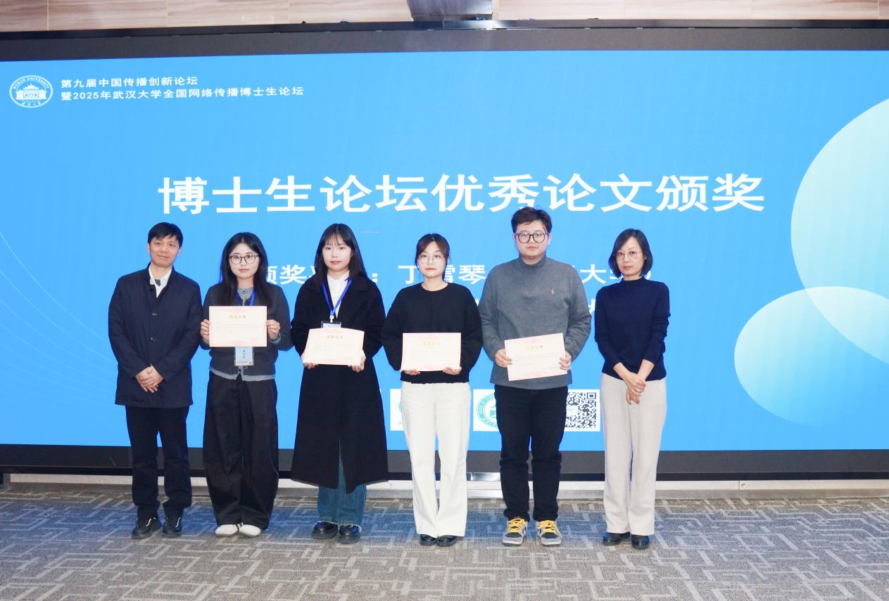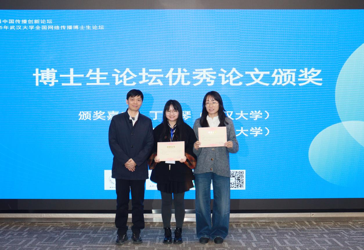 闭幕式由海角视频 媒体发展研究中心研究员、海角视频 网络传播系副系主任张雪霖副教授主持。经过严格的三轮匿名评审,本届博士生论坛最终评选出一等奖1名、二等奖2名、三等奖4名。来自海角视频 的董雪彤同学凭借《智能聚合与智能释放:数字时代中国文化的“转文化”传播机制研究》一文荣获一等奖。浙江大学吕澄欣、海角视频 宋思茹获二等奖,深圳大学谢青青、华中科技大学余崔琬、深圳大学何奕、海角视频 杨浩雷四位同学获得三等奖。海角视频 党委副书记丁雪琴、海角视频 副院长陈波教授为获奖同学颁奖并予以热烈祝贺。